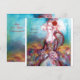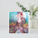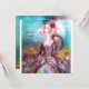 Elegante, colorido, sofisticado e design caprichoso em cores brilhantes, fúcsia, azul-turquesa, turquesa, branco. Linda mulher loira esbranquiçada e sofisticada, tecidos azuis e rosa brilhantes dourados de um traje barroco com penas e uma rosa vermelha. Pintura original em aquarela e acrílico com folha de ouro e cores iridescentes em tela. Este cartão legal e artístico é perfeito para casamentos, cerimônias nupciais, chás de noiva, festas de 16 anos, festas de aniversário de quinceañera, bailes dançantes com fantasias, compromissos românticos, anúncios de "salve a data", Natal, festas de escritório, reuniões de família, coquetéis, celebrações de Ano Novo, aniversários, encontros, concertos, recitais ou praticamente