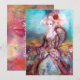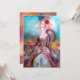 Design elegante, colorido, sofisticado e caprichoso em cores brilhantes, fúcsia, azul-turquesa, turquesa e branco. Linda mulher sofisticada de cabelo loiro esbranquiçado, tecidos azuis e rosa dourado cintilante de um traje barroco com penas e uma rosa vermelha. Pintura original em aquarela e acrílico com folha de ouro e cores iridescentes em tela. Este cartão legal e artístico é perfeito para casamentos, cerimônias nupciais, chás de noiva, festas de 16 anos, festas de aniversário de quinceañera, bailes de dança com fantasias, compromissos românticos, anúncios de "save the date", Natal, festas de escritório, reuniões de família, coquetéis, celebrações de Ano Novo, aniversários, encontros, concertos, recitais ou praticamente qualquer evento