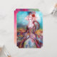 Design elegante, colorido, sofisticado e caprichoso em cores vibrantes, fúcsia, azul-turquesa, branco. Linda mulher loira platinada sofisticada, tecidos dourados cintilantes azuis e rosados de um vestido barroco com penas e uma rosa vermelha. Pintura original em aquarela e acrílico com folha dourada e cores iridescentes em tela. Este cartão descolado e artístico é perfeito para casamentos, cerimônias nupciais, chá de noiva, festas de 16 anos, festas de quinceañera, bailes à fantasia, pedidos de casamento românticos, anúncios de "save the date", Natal, festas de Natal no escritório, reuniões de família, coquetéis, celebrações de Ano Novo, aniversários, encontros, concertos, recitais ou praticamente qualquer evento que você deseje.