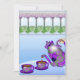 Belo convite para encontros com "As Meninas": Tea Party, Quilting Bee, Book Club, aniversário ou celebração do divórcio de Madge! Pintura digital original de Leslie Sigal Javorek de vidros manchados e conjunto de chá floral violeta com o toque atualizado de Art Nouveau. No verso, campos de texto personalizáveis para detalhes da parte ou texto padrão para preencher manualmente.