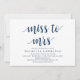 Cartão de Chá de panela da Moderna Caligrafia (Senhorita à Sra.). Convide os convidados com este Cartão de Convite perfeito. Adicione os detalhes do seu chá de panela ao texto Marinho azul correspondente.