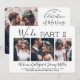 Convide familiares e amigos para testemunharem você dizer "sim" novamente com um elegante convite de casamento moderno com colagem de 4 fotos. Toda a redação é simples de personalizar, incluindo a citação que diz "nós fazemos parte II". Personalize-o para qualquer tipo de celebração de casamento, como uma cerimônia de renovação de votos, recepção de 1º aniversário, festa pós-fuga, hora do coquetel ou jantar. Personalize com os detalhes de sua escolha, incluindo data de casamento, RSVP, código de vestimenta, site, etc. (DICA DE COLOCAÇÃO DE IMAGEM: Uma maneira fácil de centralizar uma foto exatamente como você deseja é cortá-la antes de fazer o upload para o site da Zazzle.) O design moderno minimalista preto e branco apresenta quatro fotos do casal recém-casado, caligrafia de script manuscrita trendy e tipografia estilo máquina de escrever chic. Quer você tenha fugido devido à pandemia de covid ou tenha reduzido para uma minimoníaca ou micro-casamento menor e mais íntimo, a festa feliz para