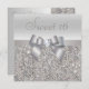 Elegante prata prateada Doce 16 convites de festas de aniversários com um lindo padrão prateado de sequências impressas, um arco e fita prateados brilhantes e uma joia bonito de bling de diamante impresso.Estes convites elegantes e glamourosos são decorados de ambos os lados. Bonita, chique, moda, convites modernos. NOTE: TODOS OS CONVITES NO ZAZZLE TÊM IMAGENS IMPRESSAS PLANAS. O texto, a fonte e a cor da fonte podem ser personalizados. Se precisar de ajuda para personalizar seu produto, entre em contato comigo através da minha loja. Ficarei feliz em ajudar.