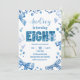 Sequins Blue Bow EIGHT aesthetic teenager birthday Invitation, Bling Girl Birthday Invite, Editable Teens Birthday Party