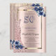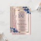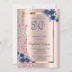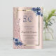 Convite Sequins Rosa de vestida Dourado, Flores Azuis 50º