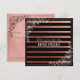 Belo, rosa de ouro e listras negras, carta de proposta personalizada da dama de honra- 'Você será minha dama de honra?', carta de festa de casamento para convidar pessoas amadas a estarem na sua festa de casamento. Lê-se: "Você será minha dama de honra?" em letras brancas na frente. Contra uma folha de ouro rosa, falsa e fundo de listras pretas. As bordas são unidas por uma estrutura botânica branca, desenhada à mão, com vinhas, folhas sagradas, bagas e arcos. No verso, tem uma letra personalizada, curta, "Eu não posso dizer que eu não tenho você", em letras combinando, elegantes, com uma folha de ouro pálida e rosa, que olha para trás e coordena o quadro botânico preto. O modelo de texto personalizado inclui o nome, a solicitação e a assinatura de fechamento personalizado do bridesmaid. Fontes e texto totalmente personalizáveis - Altere os estilos de texto, as cores ou o texto. Nota: Todas as imagens são impressas. Folha não real ou metálica. Cartões de apresentação para festas de noiva bonito perfeitos para cores de casamento de rosa de moda, casamentos florais, temas botânicos, casamentos de férias de inverno, casamentos modernos, etc. Há diferentes estilos e tamanhos de cartas de dama de honra. Altere o texto para fazer cartões de solicitação de noiva correspondentes para madrinha de casamento, florista, etc.