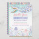 Convite de aniversário Whimsical com uma cauda de sereia fofinha, medusas adoráveis, rosa e roxo e estrelas de ouro cintilante