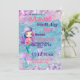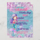Convite de aniversário doce de Sereia com fundo azul-marinho brilhante e sotaques de sereia brilhante. Uma sereia de aquarela bonita em frente e atrás. Uma tipografia bonita para fazer este convite de festas perfeito para aquele aniversário especial de meninas.