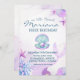 O Modelo do Convite de Aniversário do Mar é perfeito para a festa de aniversário de cor-de-água roxa púrpura com um roteiro elegante e uma fotografia fofa moderna de uma princesa do mar tiara. Aniversários de criança são especiais, e este convite pode ajudá-lo a fazer uma festa de aniversário memorável.