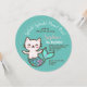 Convite Sereia Gata Azul Arredondada Menina Aniversário Pu