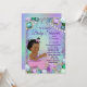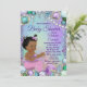 Convite de chuvada de bebê de sereia com adorável sereia bebê africana com cauda rosa em um lindo fundo de jóias submarinas. Este convite de chuvada de bebê de sereia é facilmente personalizado para o seu evento, basta adicionar os detalhes do seu evento.