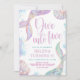 Mergulhe em uma celebração mágica com nossa sereia temida encantadora convite de aniversário de "Mergulhe em Cinco"! Este convite maravilhosamente desenhado apresenta uma cena submarina, com caudas de sereia e conchas, perfeita para o dia especial da sua garotinha, vai dar o tom para uma inesquecível festa de aniversário temida pela sereia.
