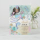 As meninas adoram coisas mágicas. Esta mágica sob a sereia marinha e o convite de aniversário de golfinhos irá deliciar convidados com um talento caprichoso, com sereia, golfinho, tartaruga e conchas marinhas, em bonito cores de rosa, azul verde e púrpura pálida. Um mundo subaquático de magia e mistério.