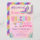 Sereia rosa e Convite de Aniversário do Unicórn beijos de Sereia e desejos de unicórnio! Personalize este belo convite com as suas próprias informações!