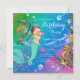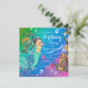 Convite de aniversário de sereia com adorável sereia com diamante tiara e pérolas em um lindo fundo verde, rosa, azul e dourado. Este belo convite de aniversário de sereia é facilmente personalizado para o seu evento simplesmente adicionando os seus detalhes no estilo de letra, cor e texto da sua escolha. este é um design impresso sem joias, arcos, brilho, etc.