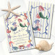 Listras desenhadas à mão branca Sereia Sob os convites de festas do Chá de fraldas do mar. Possui um homem de mersereia e sereia cercado por sealfe e estrutura ondulada. Cores de blues e outras cores pastéis. Todos os textos podem ser alterados. Para fazer mais mudanças, vá para Personalizar este modelo. Na parte inferior você verá "Quer personalizar este design ainda mais? Clique em EDIT usando a ferramenta Design. A partir daí você pode mudar algumas fontes e algumas cores, mover coisas ou excluir o que você precisa.
