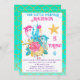 Convite Sereia sob a turquesa marítima e aniversário Doura