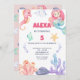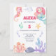 Faça um salto com este belo convite de aniversário da sereia! Com criaturas aquáticas, corais e sereia pastel, é perfeito para uma festa mágica submarina. Ideal para garotas fazendo 5 anos ou qualquer celebração de aniversário com tema de sereia. Divertido, colorido e totalmente personalizável.