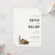 This elegant wedding invitation features a serene and inviting design with a vertical layout, showcasing a rustic log cabin illustration beside an evergreen tree. The color palette is composed of soft earthy tones on a light beige background, creating a classic and understated look. Serif fonts are used for the text, providing a sophisticated touch while allowing customization for names, dates, and locations. The overall mood is calm and welcoming, perfect for celebrating an intimate gathering in a natural setting.