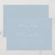 This elegant wedding invitation features a minimalist design with a soft pastel blue background, creating a serene and sophisticated atmosphere. The layout is centered, showcasing a hierarchy of text elements in clean serif fonts that emphasize the names "Penelope" and "Alexander" in an elaborate script style. The overall aesthetic is classic and refined, focusing on legibility and grace without any decorative motifs, making it perfect for couples seeking a timeless look. The mood evoked is one of calmness and celebration, ideal for marking this significant life event.