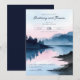 This wedding invitation features a serene watercolor landscape with soft blues, purples, and hints of pink, creating a calming and romantic atmosphere. The design showcases a tranquil lakeside scene at dusk or dawn, with silhouettes of trees and distant mountains reflected in the still waters below. Elegant typography is used for the customizable text, adding a personal touch to the whimsical and peaceful theme. Perfect for couples seeking an elegant and nature-inspired wedding celebration, this invitation sets the tone for a memorable event.