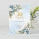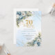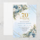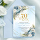 Celebrate a milestone in style with this elegant 70th birthday invitation featuring watercolor dusty blue and white flowers, soft eucalyptus greenery, and a shimmering gold frame. Designed in chic boho style with refined script lettering, this floral invitation is perfect for a classy 70th birthday party. Ideal for formal, garden, or luxury celebrations with a timeless, sophisticated touch.