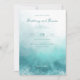 This elegant wedding invitation features a serene watercolor background in calming shades of teal and mint green, creating a tranquil and sophisticated atmosphere. The design showcases a balanced layout with clean lines and refined typography, blending modern minimalism with classic elegance. Prominent script fonts highlight the couple's names, while simple sans-serif text provides clear details about the event. Perfect for couples seeking an inviting yet formal aesthetic, this invitation sets the tone for a memorable celebration.