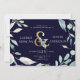 Nossa floral de verão da montanha apresenta floral azul-pastel claro e verde e folhagem em um fundo azul-da-noite com falso cartaz em folha de ouro como um belo sotaque. Todas as informações estão em uma combinação de script elegante e fonte sans serif pronta para sua personalização. Verifique em nossa loja mais itens desta coleção.