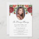 Serviço Elegante vermelho de fotografia memorial floral/comemoração da vida/convite para funeral com uma fotografia rosa e rosas vermelhas.