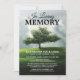 Convite à comemoração funerária, que inclui uma colina de jardim/parque com uma árvore memorial, um bando de aves voadoras, um céu dramático e uma celebração de modelo de vida que é fácil de personalizar.