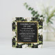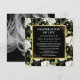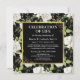 Convites quadrados de celebração da vida com um fundo preto elegante, flores brancas sofisticadas, brilho dourado cintilante, uma foto de seu ente querido e um modelo de serviço funerário fácil de personalizar.