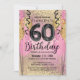 Convite Sessenta aniversário, rosa e Dourada,