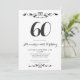Este elegante convite de aniversário preto e branco é perfeito para convidar a família e os amigos a celebrarem esta ocasião especial. Mínimo e simples, com uma borda decorativa no topo e no fim, projetamos isso para ajudá-lo a organizar o 60º aniversário da sua mãe, tia, amigo ou seu próprio estilo e para dar o tom para um evento memorável. Com uma combinação de script e tipografia serif, você pode personalizar o modelo de texto com suas informações. Com os belos motivos decorativos florais continuados no verso, este cartão pode ser usado pelos destinatários como indicador mesmo depois do evento. Quer você esteja planejando uma grande reunião ou uma reunião íntima comece a criar uma festa de aniversário inesquecível agora. Arte original de ©beateallertondesigns