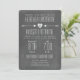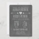 Um convite de casamento com ilustração de um coração entre duas setas. O texto é branco. O fundo é inspirado no quadro.