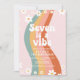 Retro inspirou Seven é um convite de aniversário de 7 Vibe com estilo hippie arco-íris, margarida e fontes e cores boho.