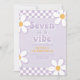 Sete é um Clima Garota Groovy Convite de aniversário de 7 anos inspirado no estilo retrô dos anos 70 com fontes e margaridas e padrão xadrez.