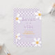 Convite Sete é um Clima Xadrez Rétro Roxo Margarida