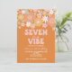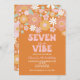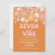 Groovy Seven é um convite de aniversário de 7 floral retrógrado da Vibe com flores do estilo 70 e fontes e cores boho.