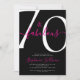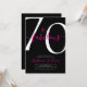 Rótulo de setenta e fabuloso, convite de aniversário de 70 anos moderno rosa e preto minimalista que você pode personalizar e enviar para a celebração do seu aniversário de setenta anos. O "70 e Fabuloso" é definido usando tipografia de fonte de script popular. As cores do texto podem ser alteradas usando o menu de edição.