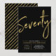 Celebre seu dia especial com este convite de aniversário de 70 anos simples e elegante. Este design apresenta uma escrita "Setenta" com layout limpo em combinação de cores preto e dourado. Mais designs disponíveis na minha loja BaraBomDesign.