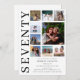 Celebrate the big 7-0 in style! Make it a birthday to remember with an unforgettable invitation. Here's the perfect way to invite your closest friends and family to your 70th birthday bash - a modern seventieth birthday invitation featuring 9 of your favorite photo's, with "seventy" written in an bold. Mark your big milestone in life, and make it a celebration to remember!