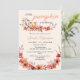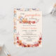 Os convites para chuveiros de bebês com temática de queda de abóbora apresentam um delicado design de aquarela com folhas de outono e flores em tons quentes de laranja, vermelho e rosa. Os convites exibem belamente abóboras pintadas à mão cercadas por folhas vibrantes e flores, colocadas sobre um fundo macio e cremoso. As fontes de script elegantes adicionam um toque de sofisticação, enquanto as sutis lavagens aquáticas dão um toque encantador e rústico. O convite foi pensamente projetado para criar um cenário quente e convidativo perfeito para comemorar a próxima chegada.