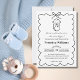Celebre o seu pequeno no caminho com este na moda e personalizável convite para chás de fraldas neutro por gênero! Este moderno design preto e branco apresenta uma ilustração simples de uma arte de linha de um bebê embrulhado em um cobertor no topo, enquadrado com um elegante arco preto e uma borda de cordas para um toque chic, elegante e eterno. Este convite para chás de fraldas moderno é perfeito para pais que amam design limpa com um toque de elegância. Quer você esteja hospedando um encontro clássico, um brunch chic, ou um chá de tendências, este convite define o tom para uma celebração a ser lembrada. Personalize hoje e crie uma manutenção tão bela quanto o dia que você vai compartilhar com os entes queridos! Procure nossa coleção para coordenar produtos. Design é Copyright Soar in Style Design LLC.