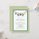 Concurso de chá de fraldas do Dia das Bruxas neutro em função do sexo. Fácil de mudar o texto. Linda cor de água do halloween e roupas de baía. Fundo de gingham verde. Design bonito e divertido para um chá de fraldas.