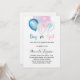 Para um chá de fraldas revelador de gênero. Um fundo branco chic. Decorados com balões azuis, cor-de-rosa e brancos. Personalize e adicione o nome da mãe a ser e os detalhes da festa. O nome e o texto: Boy ou Girl são escritos com um estilo escrito à mão