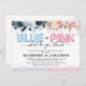 Sexo combinado revela convites para chuveiros de bebês com um simples fundo branco, brilhos brilhantes e confete, elegantes florais rústicos de aquarela, o ditado bonito "azul ou rosa, o que você acha", e um modelo de celebração de bebês que é fácil de personalizar.
