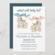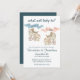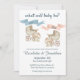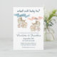 Este gênero de bebê personalizado revela convite de festas com estilo de aquarela antiquado. Uma imagem de uma carruagem de estilo de vintage é impressa em ambos os lados do convite. Um coelhinho de bebê recheado está sentado em frente à carruagem. O lado esquerdo apresenta uma fita azul com o título "BOY", e o lado direito apresenta uma fita cor-de-rosa com o título "girl" impresso sobre ela.