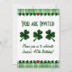 Arte Feliz e Bonita criada por Naomi Ochiai, do Japão. Design Verde do Shamrock para irlandeses e outros que amam a cultura irlandesa. Com um trevo de Quatro Folhas com padrão de bolinhas. design convite de aniversário. Você pode personalizar o texto!
