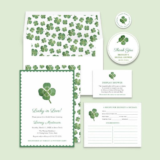Convite Shamrock Lucky In Love St Patricks Chá de panela