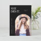 Modern graduation announcement card featuring a black arch frame for your photo. The text says "SHE DID IT."